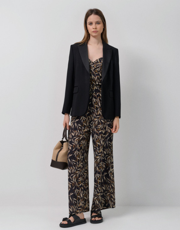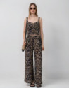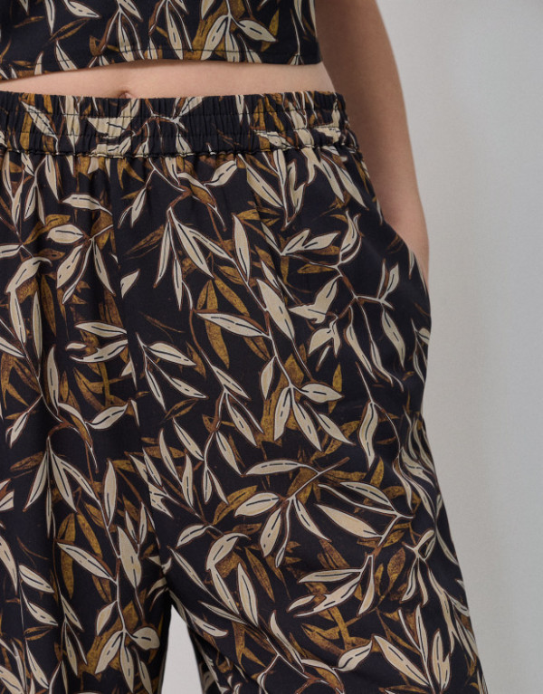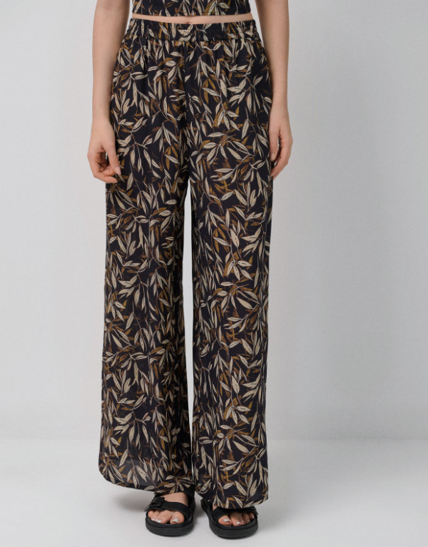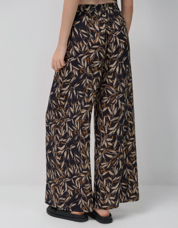 Pantalón palazzo crepé estampado hojas tonos marrones