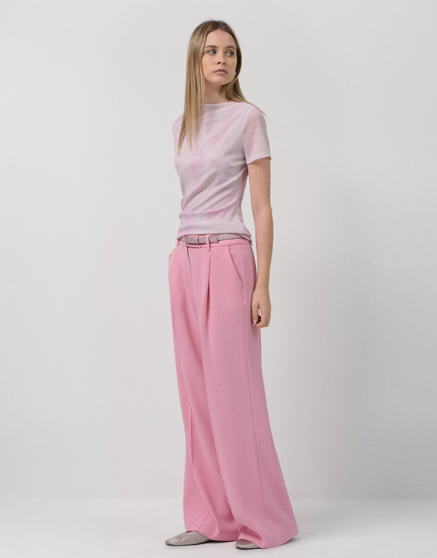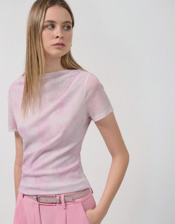 Camiseta manga corta tul rosa