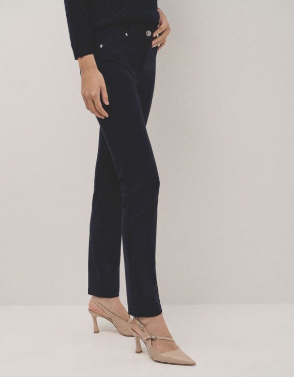 Añadir a la cesta Nuevo Pantalón slim elástico... $2,990.00 Pantalón slim elástico punto cortado azul marino
