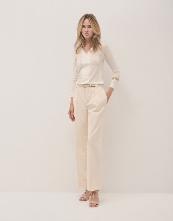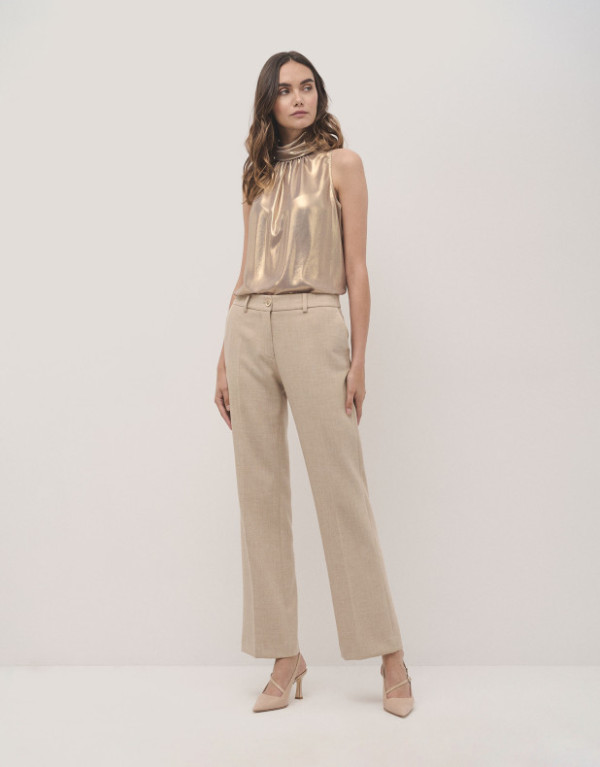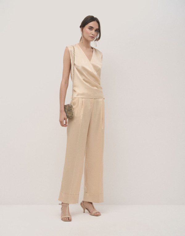 Añadir a la cesta Nuevo Pantalón sastre con vuelta... $5,590.00 Pantalón sastre con vuelta crepé beige claro