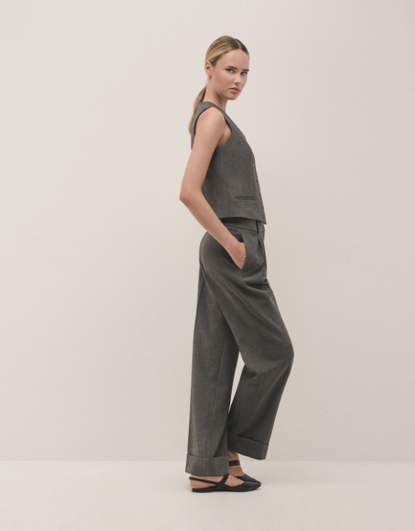 Añadir a la cesta Nuevo Pantalón sastre con vuelta... $5,590.00 Pantalón sastre con vuelta doble crepé gris