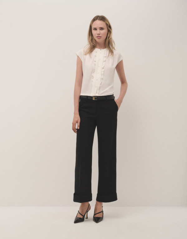 Añadir a la cesta Nuevo Pantalón sastre con vuelta... $6,350.00 Pantalón sastre con vuelta crepé crudo