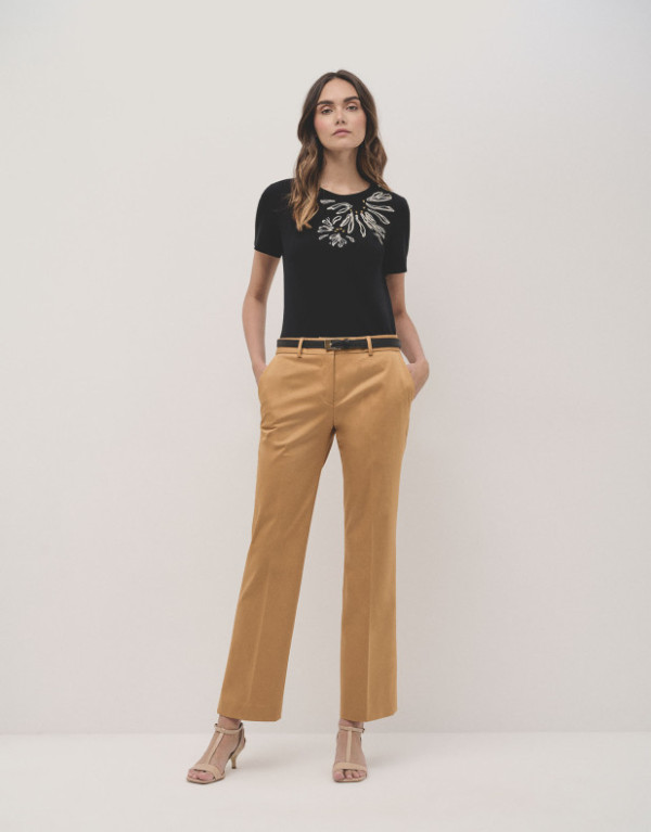 Añadir a la cesta Nuevo Camiseta algodón negra flor... $2,490.00 Camiseta algodón negra flor bordada beige