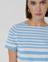 Jersey de manga corta en punto fino rayas azul y blanco