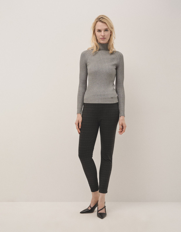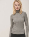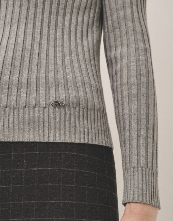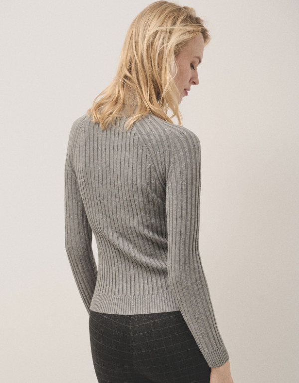 Jersey de manga larga y cuello subido en un punto de canalé color gris.