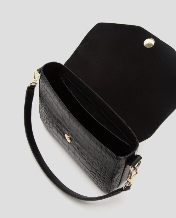 Bolso bandolera Miranda Midi piel grabado coco negro