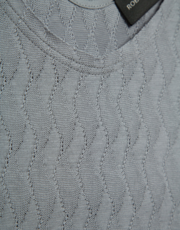 Camiseta de punto en color gris con escote pico, tirante y cuerpo ajustado.