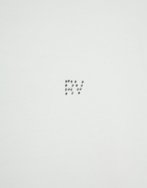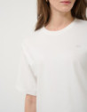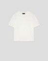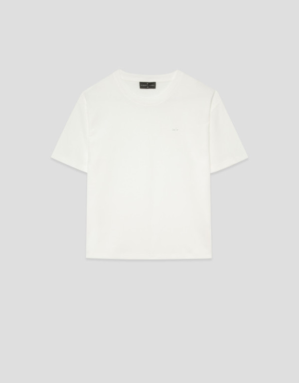 Camiseta de corte oversize y cuello caja en un algodón color blanco con aplicación de strass brillante RV en pecho.