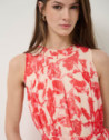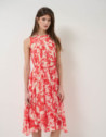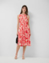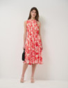 Vestido midi sin mangas beige estampado floral rojo