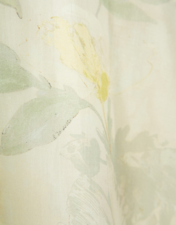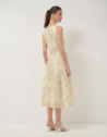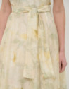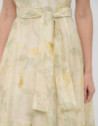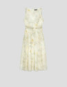 Vestido sin mangas en gasa estampado floral verde y crudo