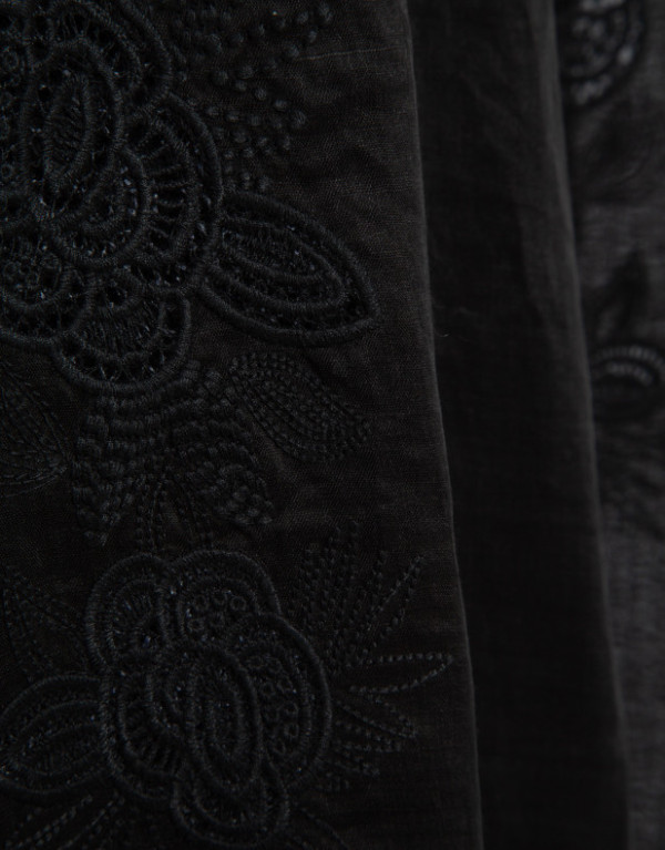 Vestido ramio negro con bordado floral a tono