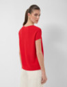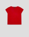 Jersey con escote barco en punto fino color rojo. Manga corta murciélago, cuerpo recto y canalé en bajos, manga y escote.
