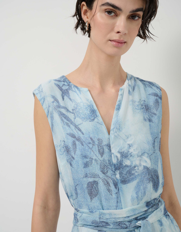 Añadir a la cesta Nuevo Vestido sin mangas en gasa... $11,350.00 Vestido sin mangas en gasa estampado floral verde y crudo