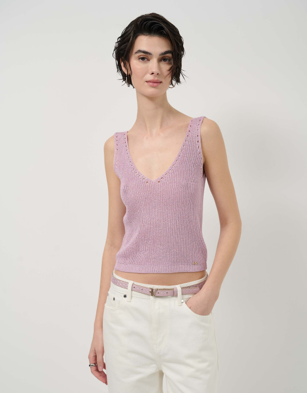 Añadir a la cesta Nuevo Crop top de sisas punto... $3,250.00 Crop top de sisas punto calado con lúrex rosa