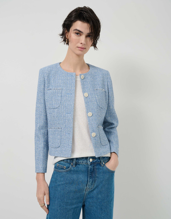 Añadir a la cesta Nuevo Chaqueta corta trama beige... $9,450.00 Chaqueta corta trama beige con hilo fantasía