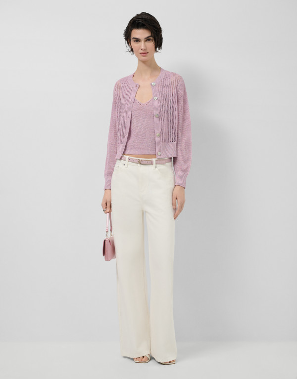 Añadir a la cesta Nuevo Cárdigan corto punto calado... $3,790.00 Cárdigan corto punto calado con lúrex rosa