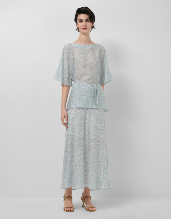 Añadir a la cesta Nuevo Falda midi con aberturas en... $5,250.00 Falda midi con aberturas en crepé estampado tonos azules