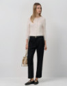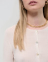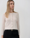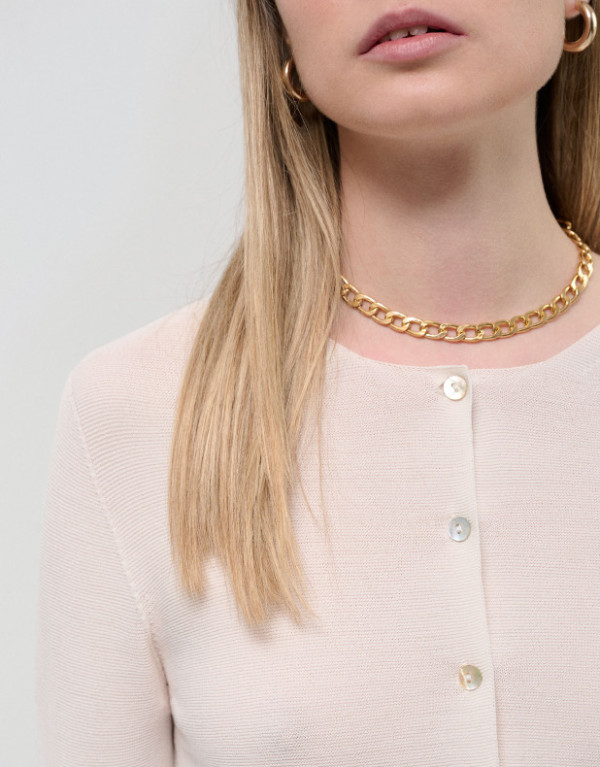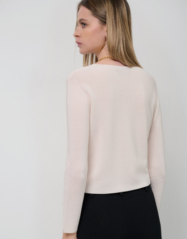 Chaqueta corta en un punto bobo sin costuras color crudo. Escote redondo y cierre con botonadura en delantero.