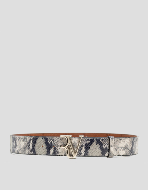 Cinturón en piel grabado serpiente gris